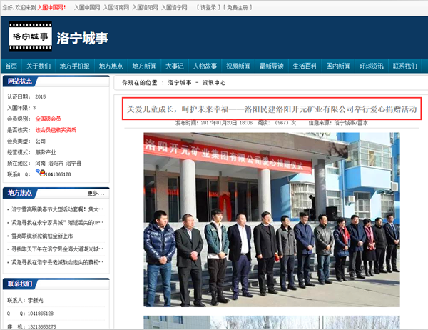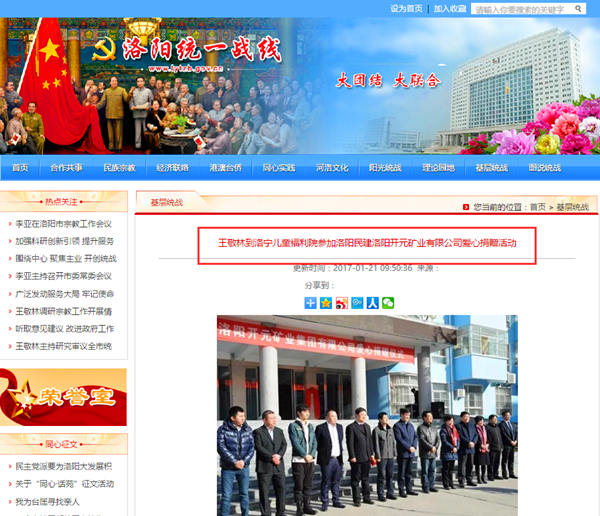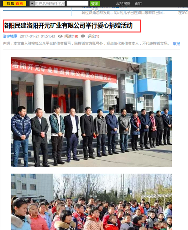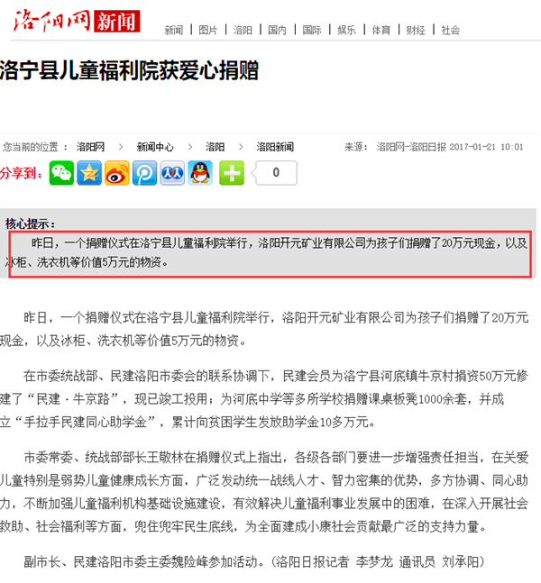 弘揚社會(huì )正能量 愛(ài)心事業(yè)美名揚——洛陽(yáng)開(kāi)元礦業(yè)集團善舉引起國內各大媒體高度關(guān)注